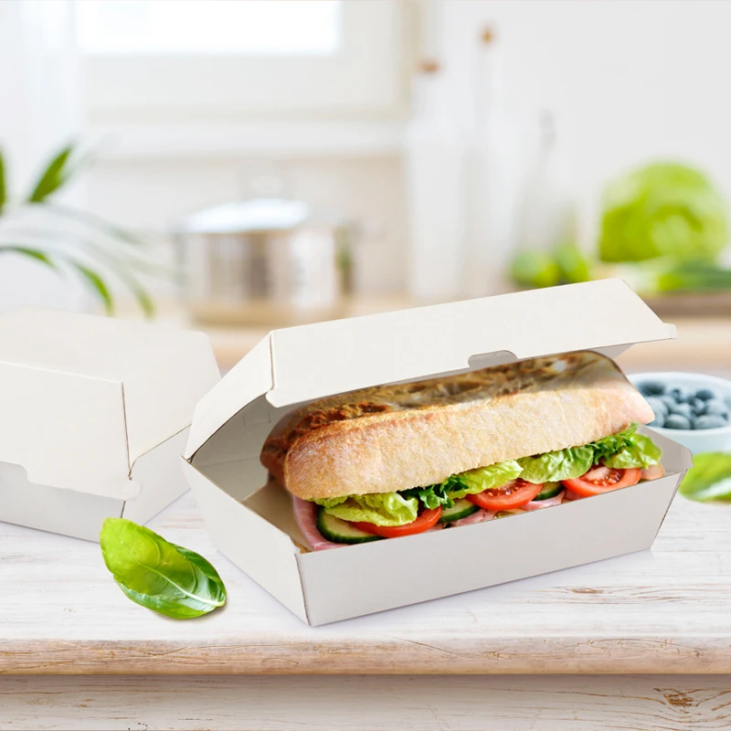 Perfect for food-to-go and delivery service, our paper lunch boxes are ideal for pre-packed salads, sushi, desserts, and more. Made from recyclable and compostable materials with grease-resistant coating, these boxes are easy to carry, and support custom branding, making them a sustainable packaging choice for restaurants, delivery, and retail.