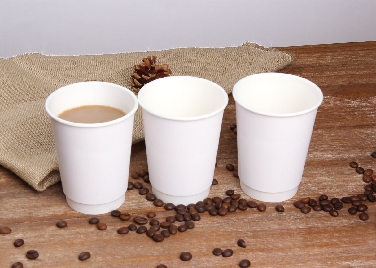 Eco-friendly disposable double wall paper cups, suitable for hot drinks, cold beverages, coffee, tea, beer, and juice. Made from sustainable and biodegradable materials, these recyclable cups support custom printing, widely used in cafés, restaurants, takeaway, vending, and food packaging solutions.