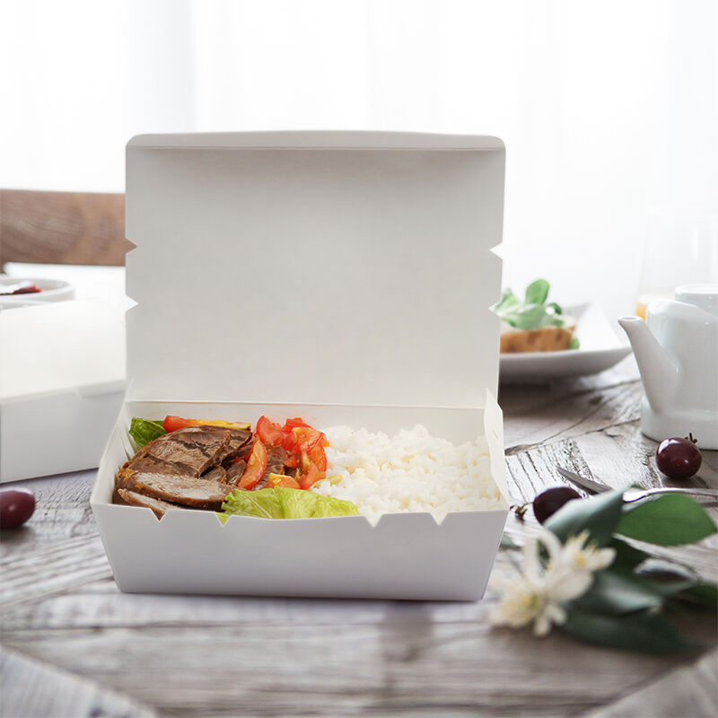 Perfect for food-to-go and delivery service, our paper lunch boxes are ideal for pre-packed salads, sushi, desserts, and more. Made from recyclable and compostable materials with grease-resistant coating, these boxes are easy to carry, and support custom branding, making them a sustainable packaging choice for restaurants, delivery, and retail.