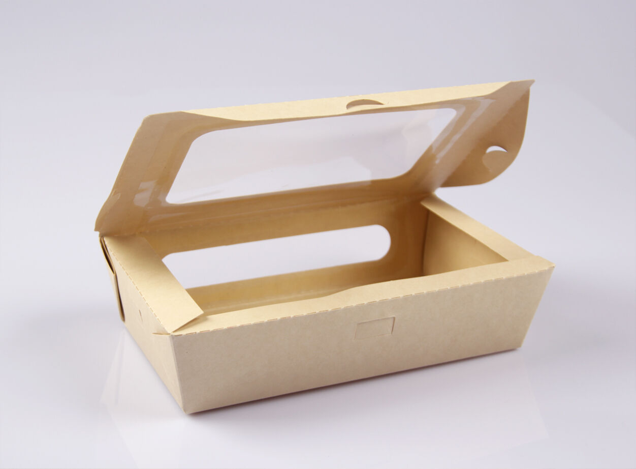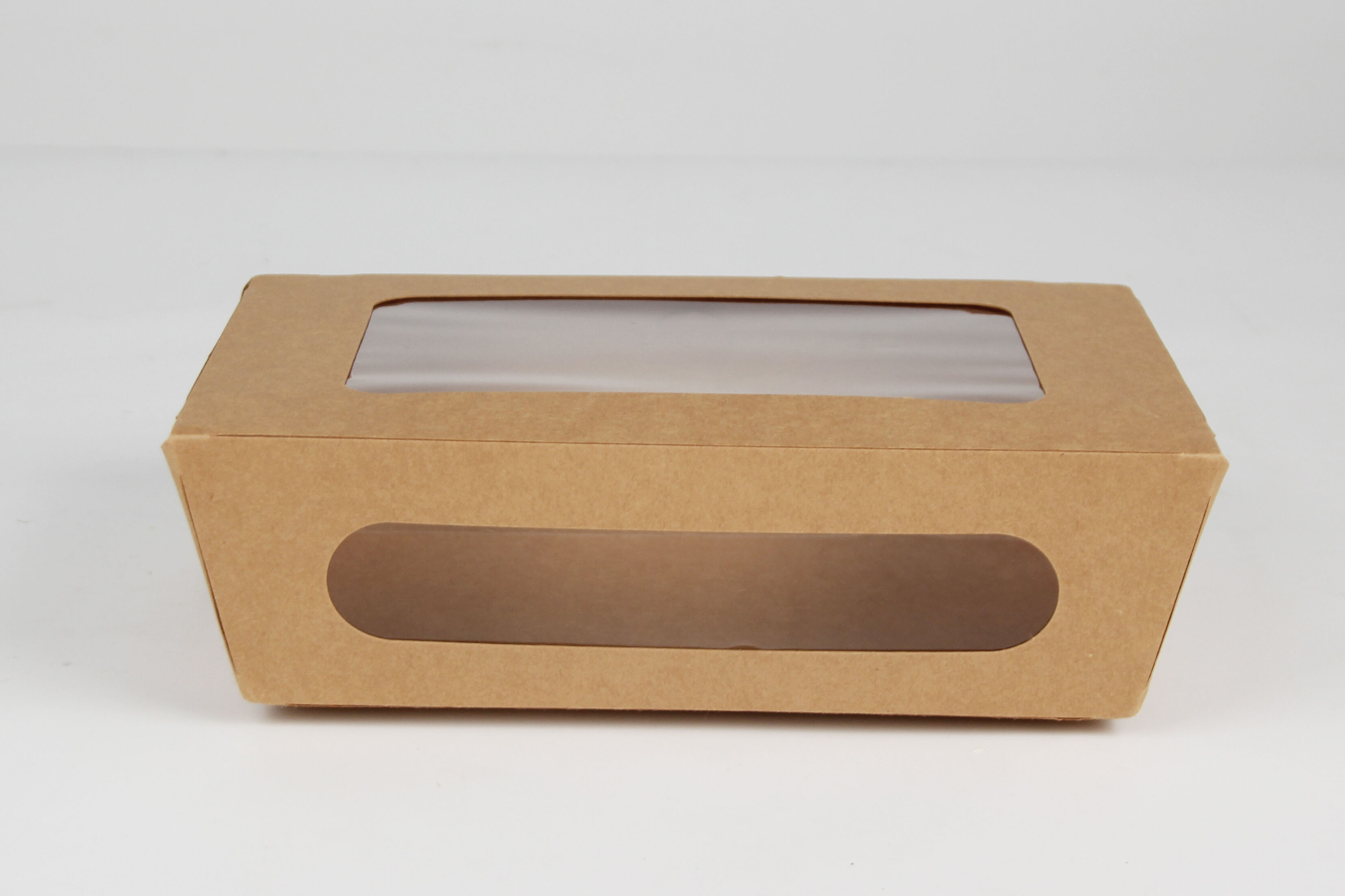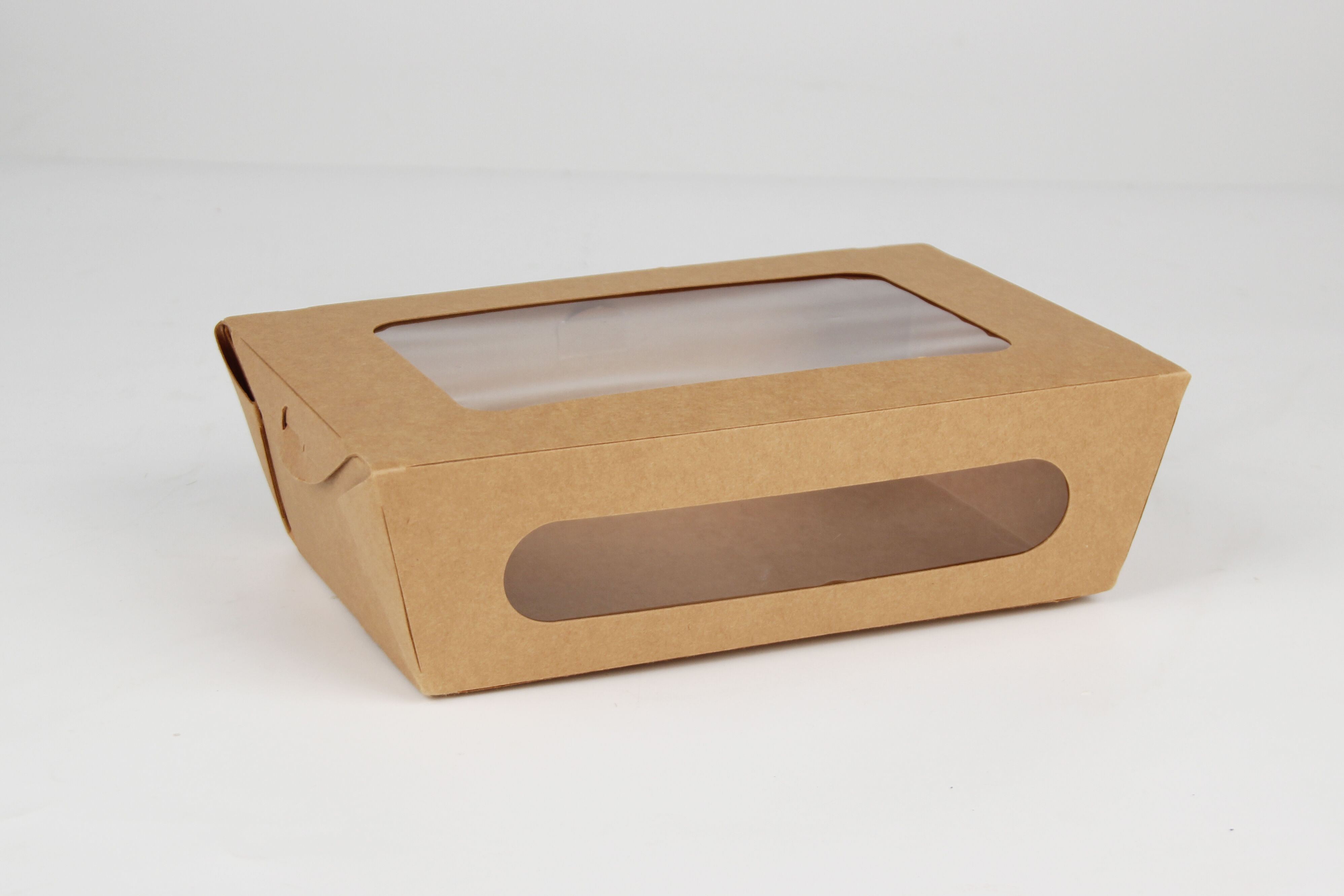 Perfect for food-to-go and delivery service, our paper two window lunch boxes are ideal for pre-packed salads, sushi, desserts, and more. Made from recyclable and compostable materials with grease-resistant coating, these boxes are easy to carry, and support custom branding, making them a sustainable packaging choice for restaurants, delivery, and retail.