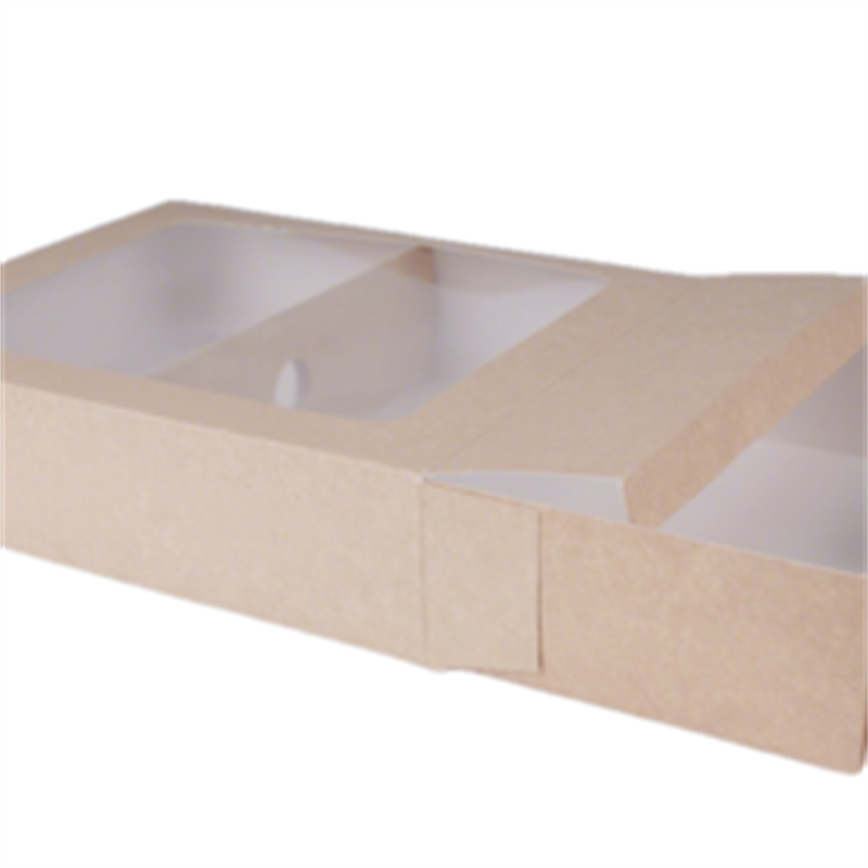 Platter Box, şeffaf pencere ile veya şeffaf penceresiz olarak temin edilebilir; bu sayede müşteriler içeriği net bir şekilde görebilirken koruma ve hijyen standartları da korunur.